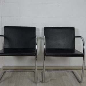 a pair of Knoll Studio Mies Vander BRNO chairs in black leather | eBay